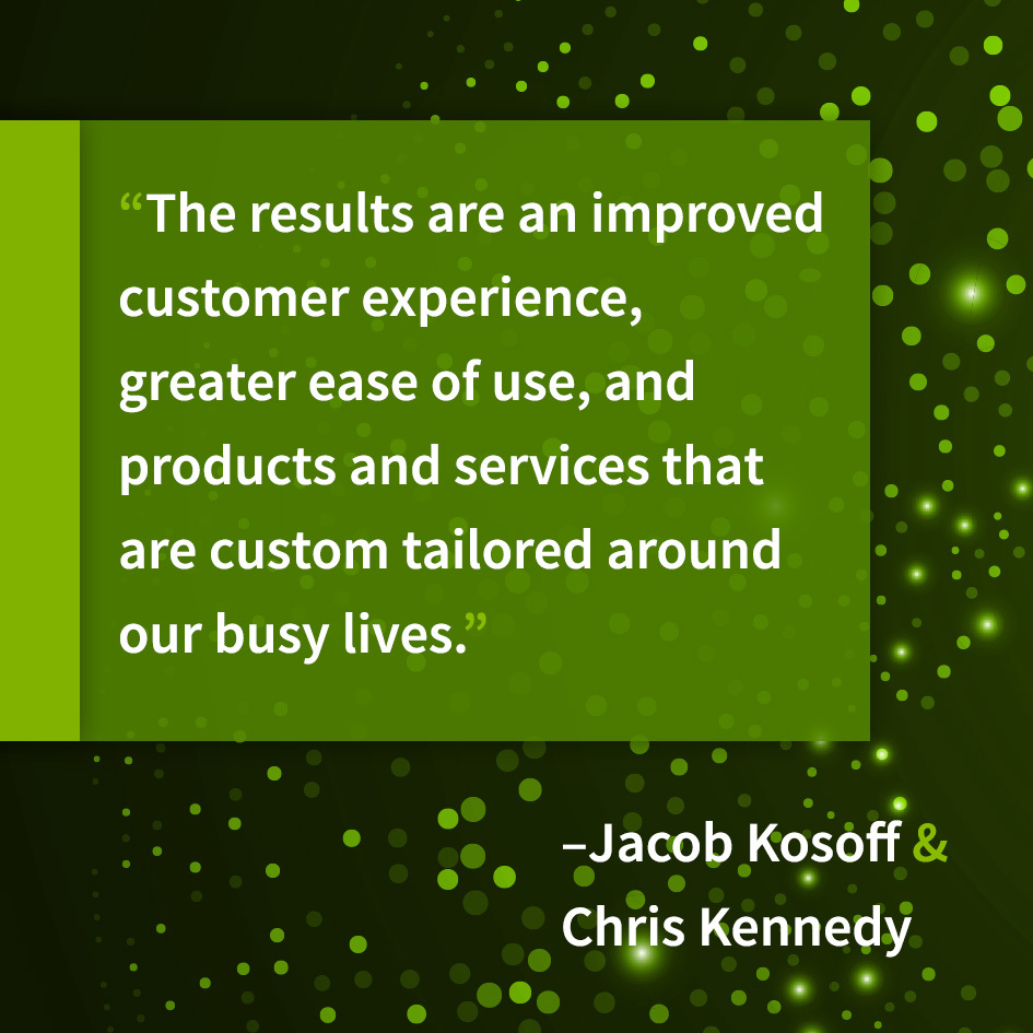 The results are an improved customer experience, greater ease of use, and products and services that are custom tailored around our busy lives.