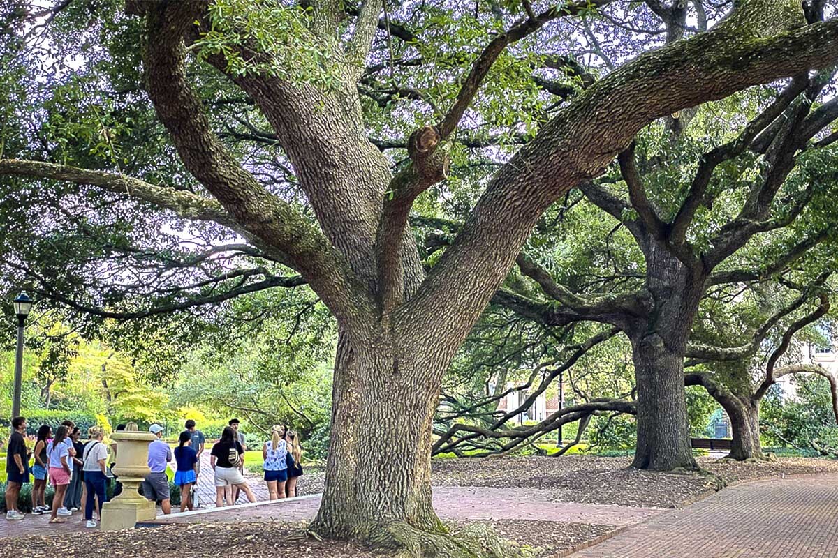 Beneath gigantic oak trees at The Horseshoe, a contingent of University of South Carolina students takes in the breathtaking during an outdoor class.