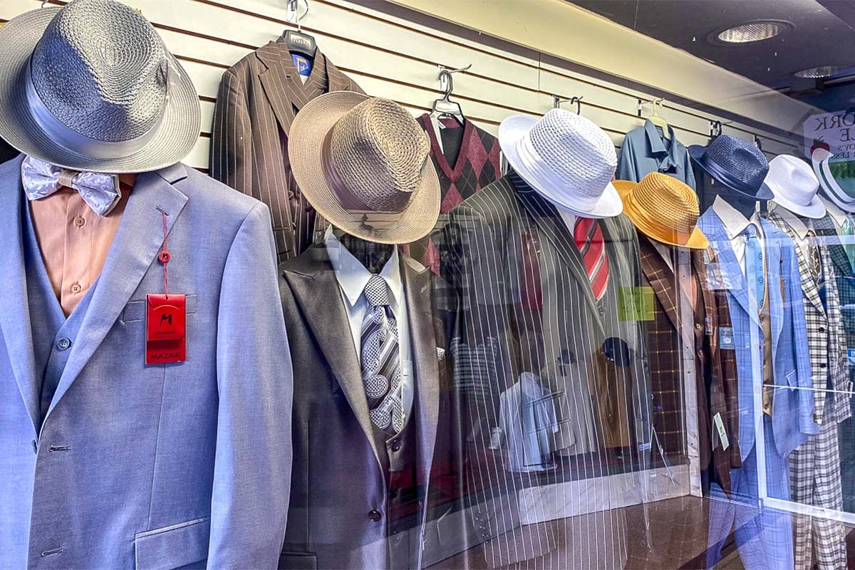 Contemporary men’s fashions on display in a downtown Columbia storefront.