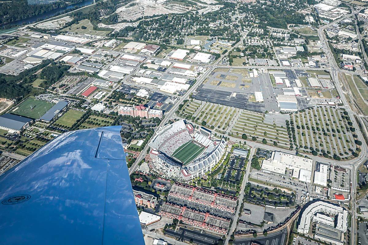 The Cirrus airplane floats like a feather as Columbia, South Carolina, spreads majestically a few thousand feet below. Pilot Connor Brandon begins banking to provide an awe-inspiring view of the sprawling University of South Carolina campus.