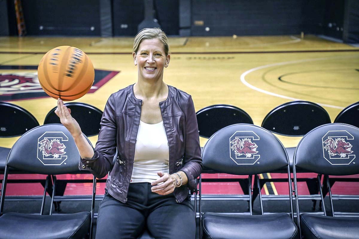 Lisa Burgess is back home in Carolina Coliseum, where she played basketball for the Lady Gamecocks a few years ago.