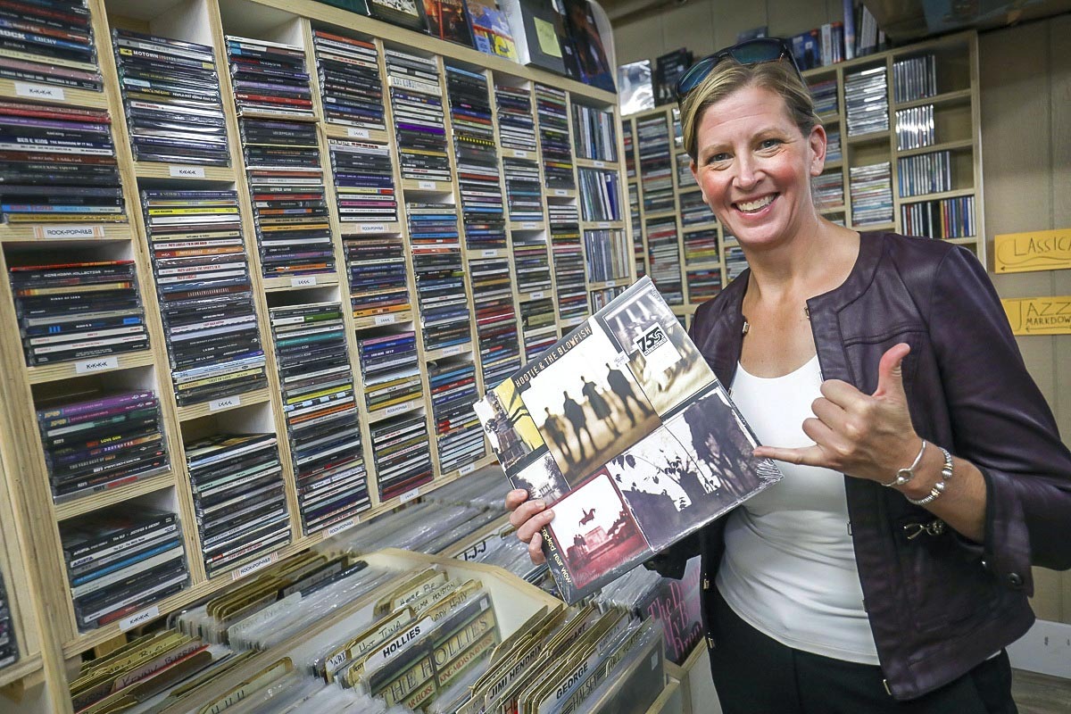 Lisa Burgess holds up an album from Hootie & the Blowfish, the homegrown rock band that became a staple of Top 40 airplay – and remains immensely popular today.