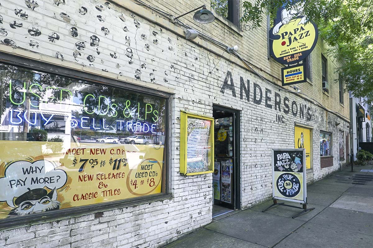 • The entrance to Papa Jazz Record Shoppe entices with offers of great prices for “most new CDs.” The vintage shop draws in droves of people who grew up when vinyl and compact discs were king – as well as their children, who were raised to the epic sounds of the 1970s and ‘80s.