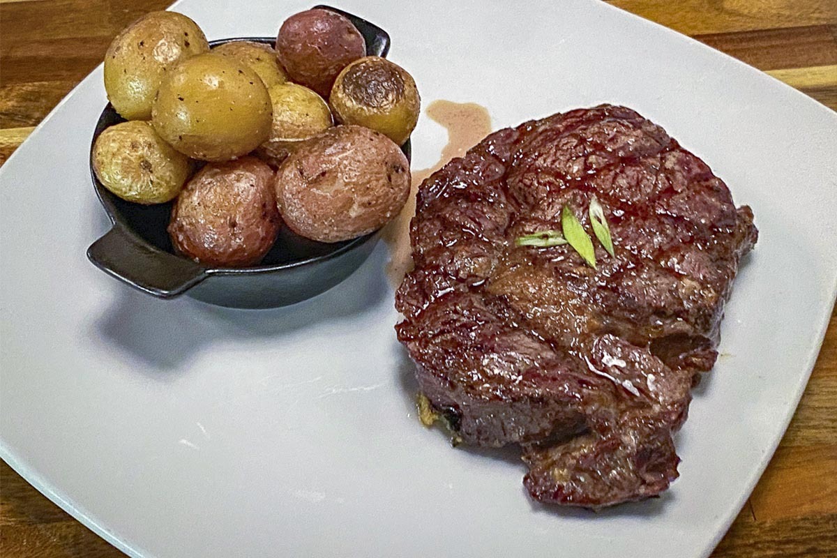 • A delectable ribeye steak and potatoes, our choice of entrée at Cork & Cleaver Steakhouse in nearby Lexington.