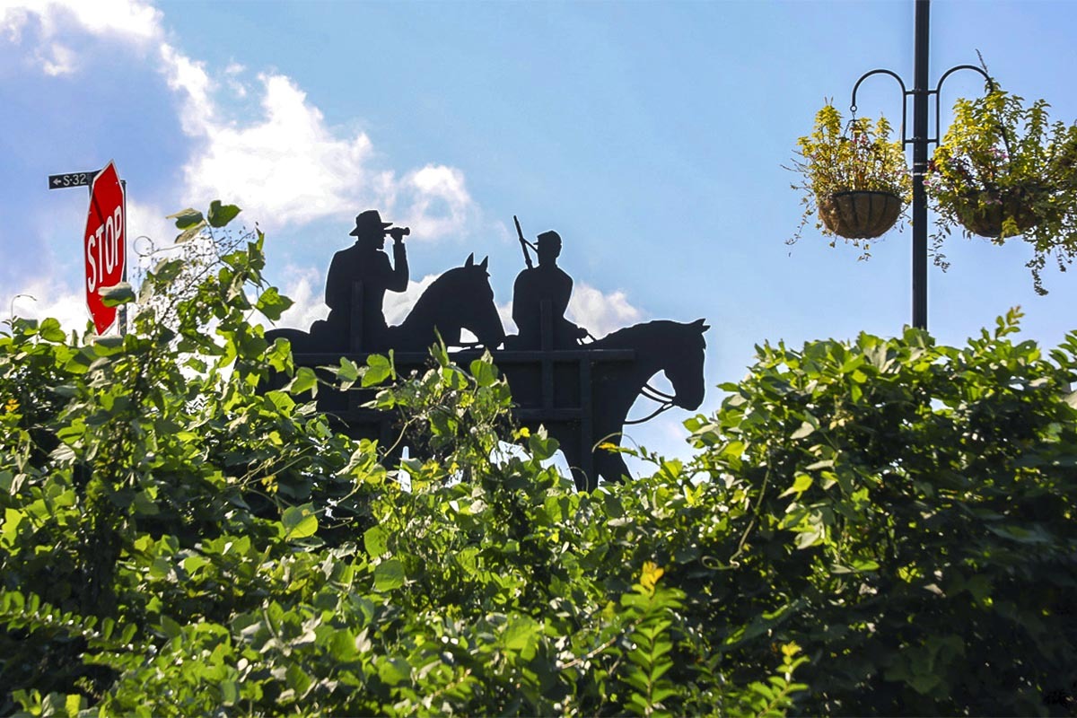 • A statue near the entrance to Riverfront Park references Gen. Sherman’s march through the region in 1865.