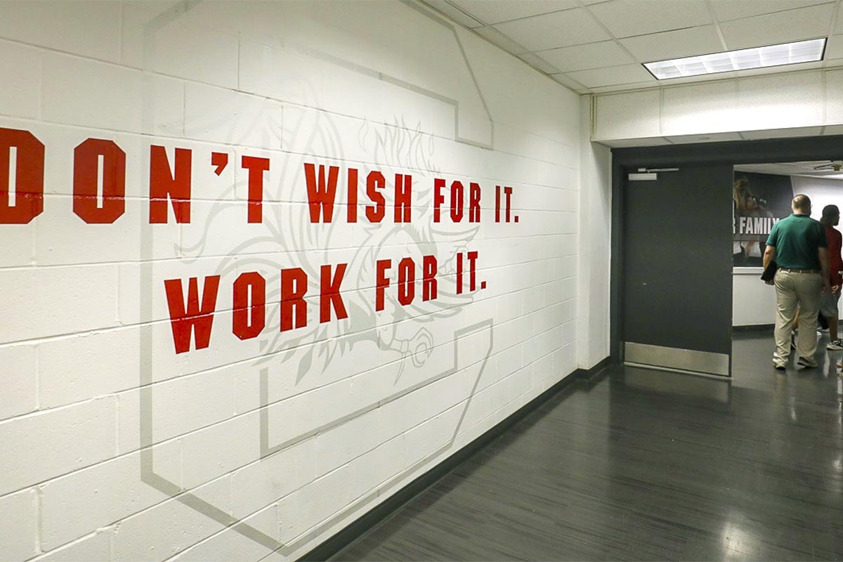 • “Don’t Wish For It. Work For It.” These words on the wall greet South Carolina basketball players each day as they head to practice.