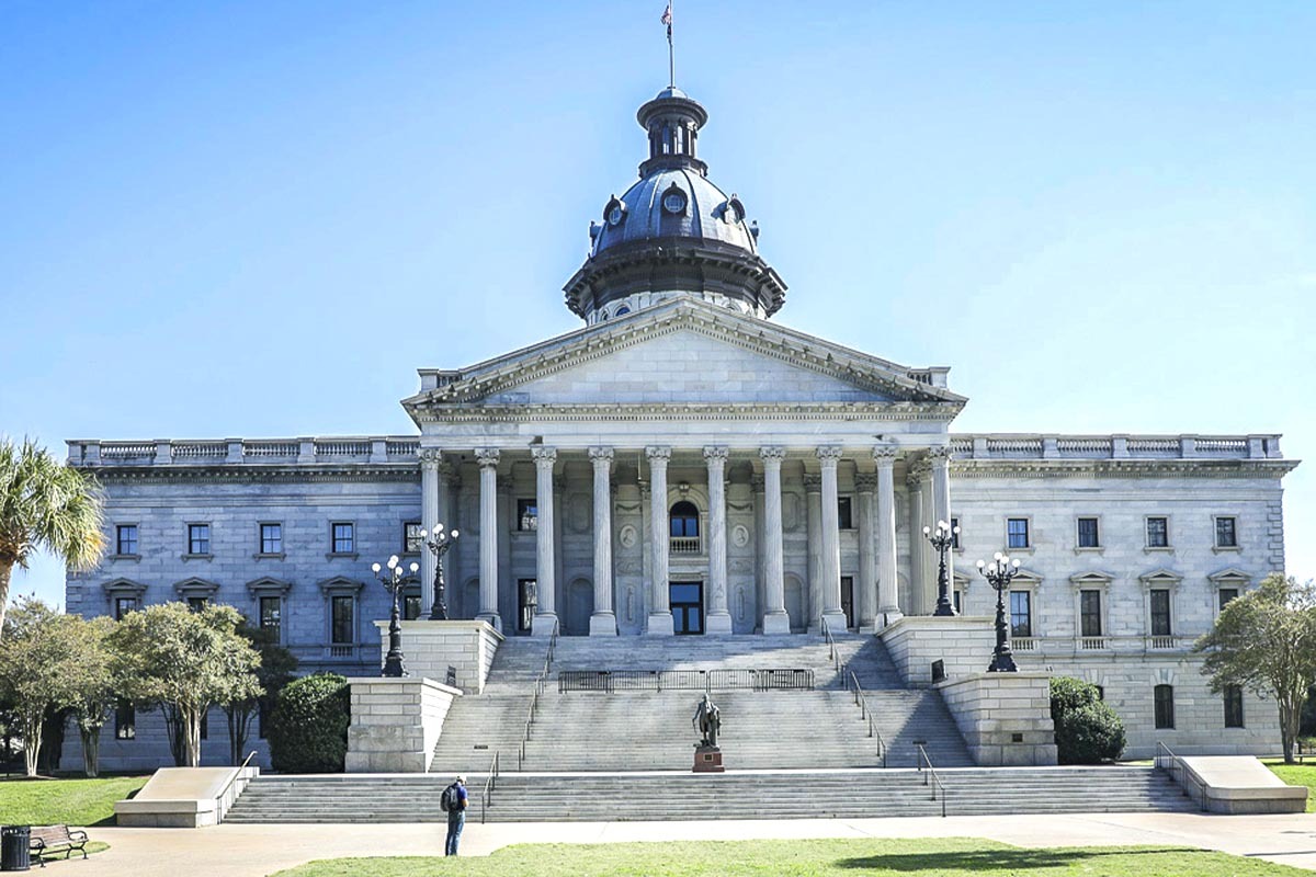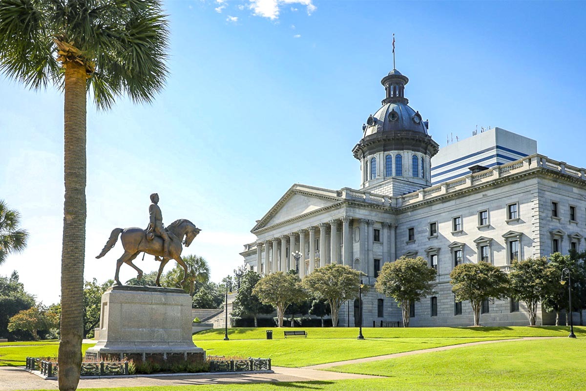 The South Carolina State House was completed in 1903. Sitting on a hill, it binds downtown commerce in Columbia with the expansive University of South Carolina campus.