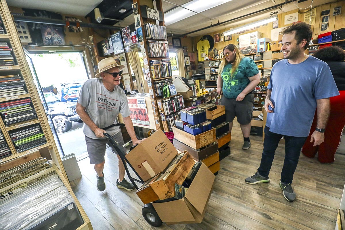 • A customer dollies in a collection of classic albums for potential sale at Papa Jazz Record Shoppe, a popular establishment where vinyl remains king.