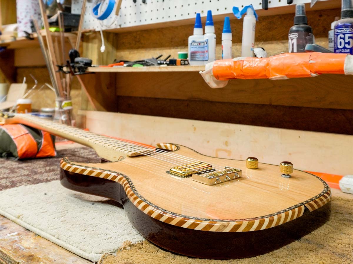 • Custom guitar on workbench