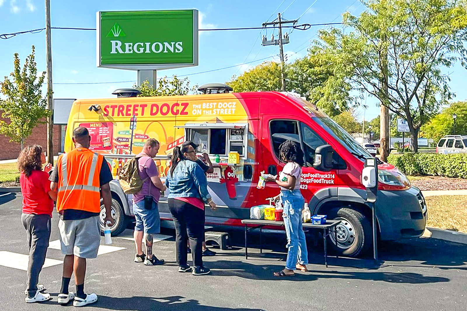 Tomlin (favorite dog variety: the signature chilidog) and his wife, Bridgette (chili cheese dog), who own and run STREET DOGZ, delivered on that promise once again while serving 100-plus guests at Regions’ Florissant Branch during the bank’s recent Big Bike tour throughout Greater St. Louis.