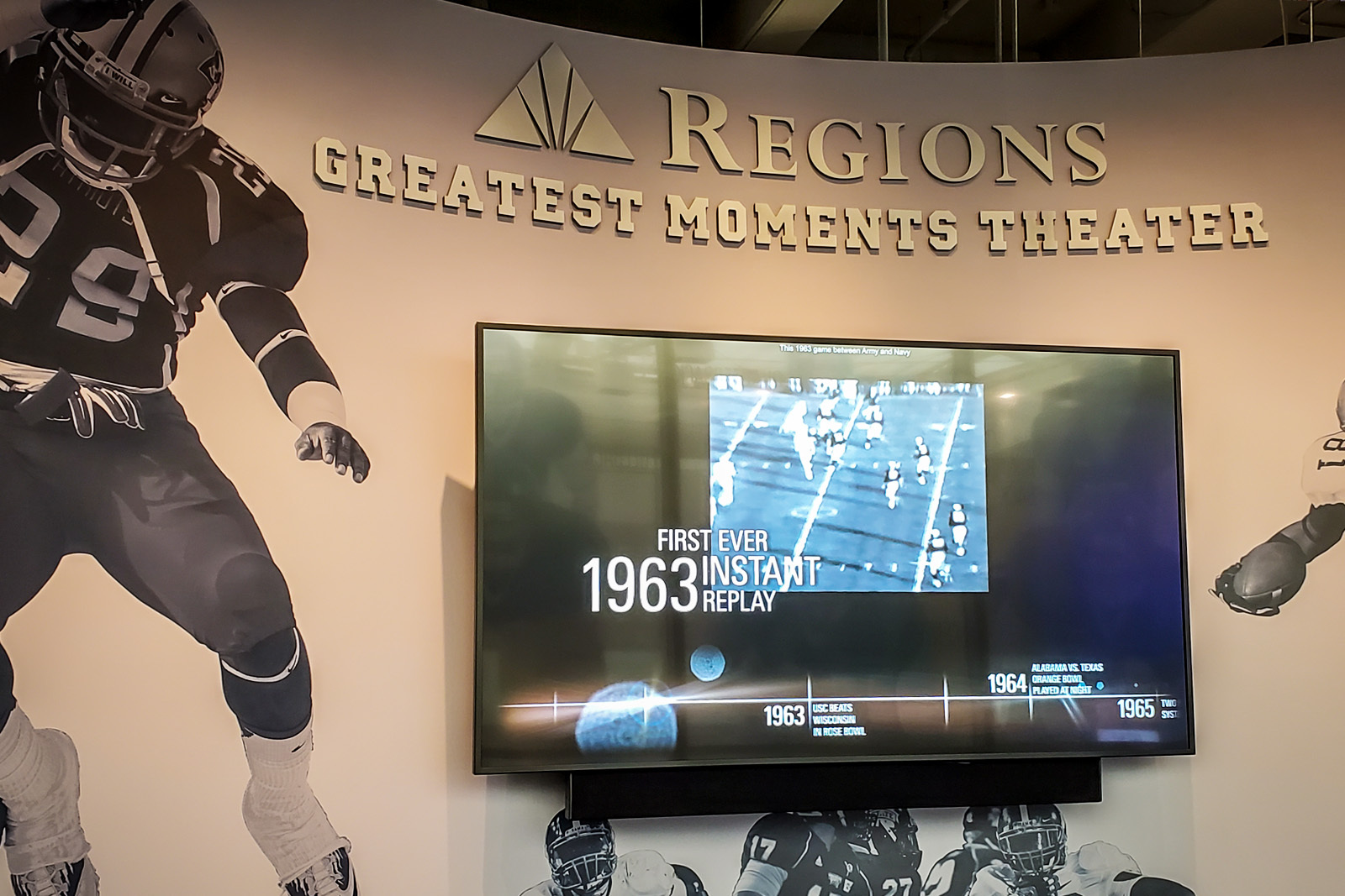 That support continues with an exhibit called Regions Greatest Moments Theater, which shows archival football of some of the sport’s most historical moments. And it also includes sponsoring luncheons and dinners that feature Hall of Famers such as former Florida quarterback Tim Tebow and Auburn Heisman winner Bo Jackson.